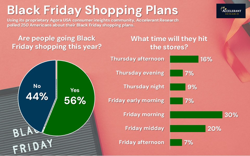 Happy Black Friday! 🎁 Using its proprietary Agora USA consumer insights community, Accelerant Research polled Americans about their Black Friday plans and preferences. Check out our findings below!